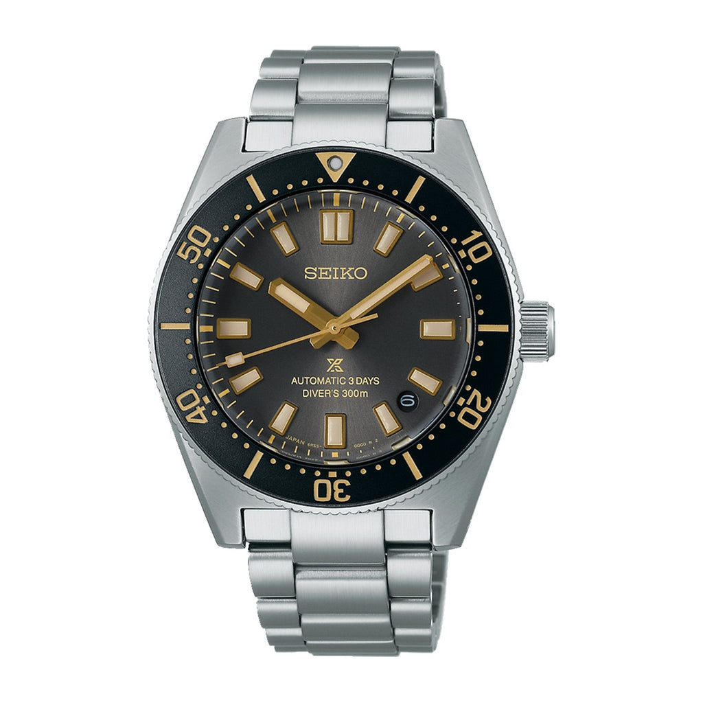 Seiko Prospex Seiko 100th Anniversary 1965 Heritage Diver's Watch Special Edition SPB455 in stainless steel case with black dial on stainless steel bracelet, featuring a date display and automatic movement with up to 3 days of power reserve.