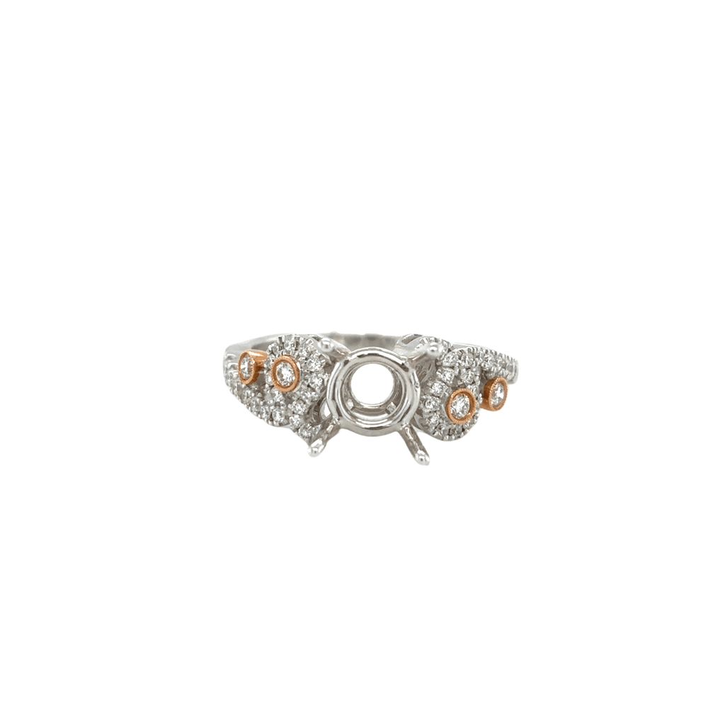 Made with 18 karat white and rose gold diamond ring mounting. Diamonds totaling 0.33 carat weight.
