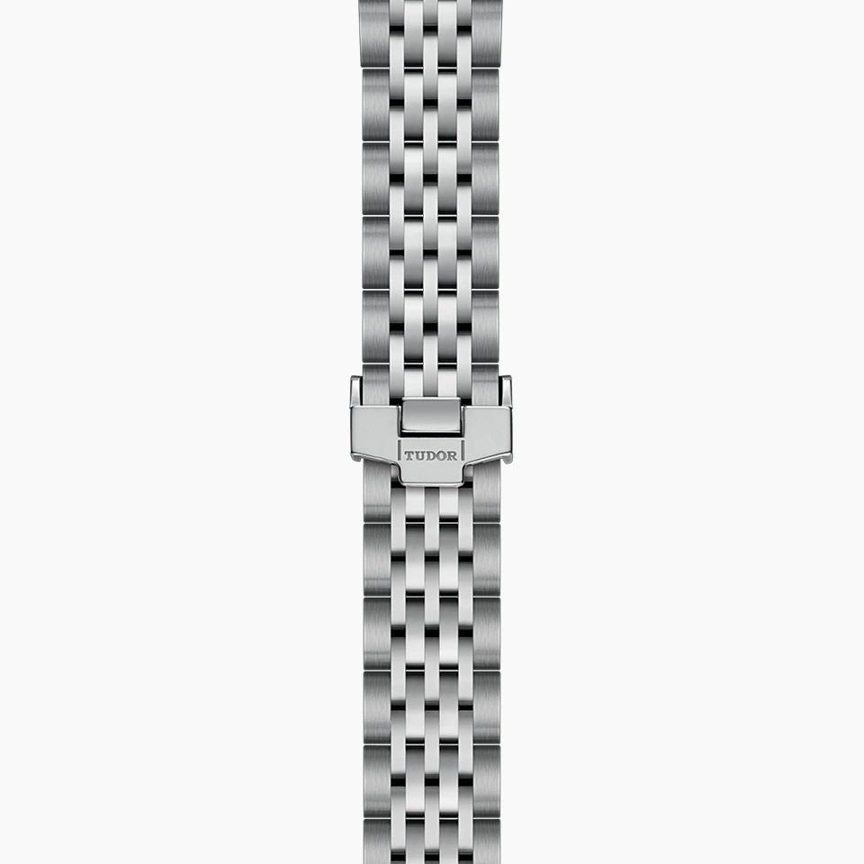 28-mm steel case, diamond-set dial. 28-mm steel case with polished finish. Smooth steel bezel with polished finish. Self-winding mechanical movement, Caliber T201. Silver, embossed decoration, domed, with 6 diamonds. Steel screw-down winding crown with the TUDOR logo. Sapphire crystal. Waterproof to 100 m (330 ft). Steel bracelet, 7 rows, satin-brushed external links, polished center links, with folding clasp and safety catch.