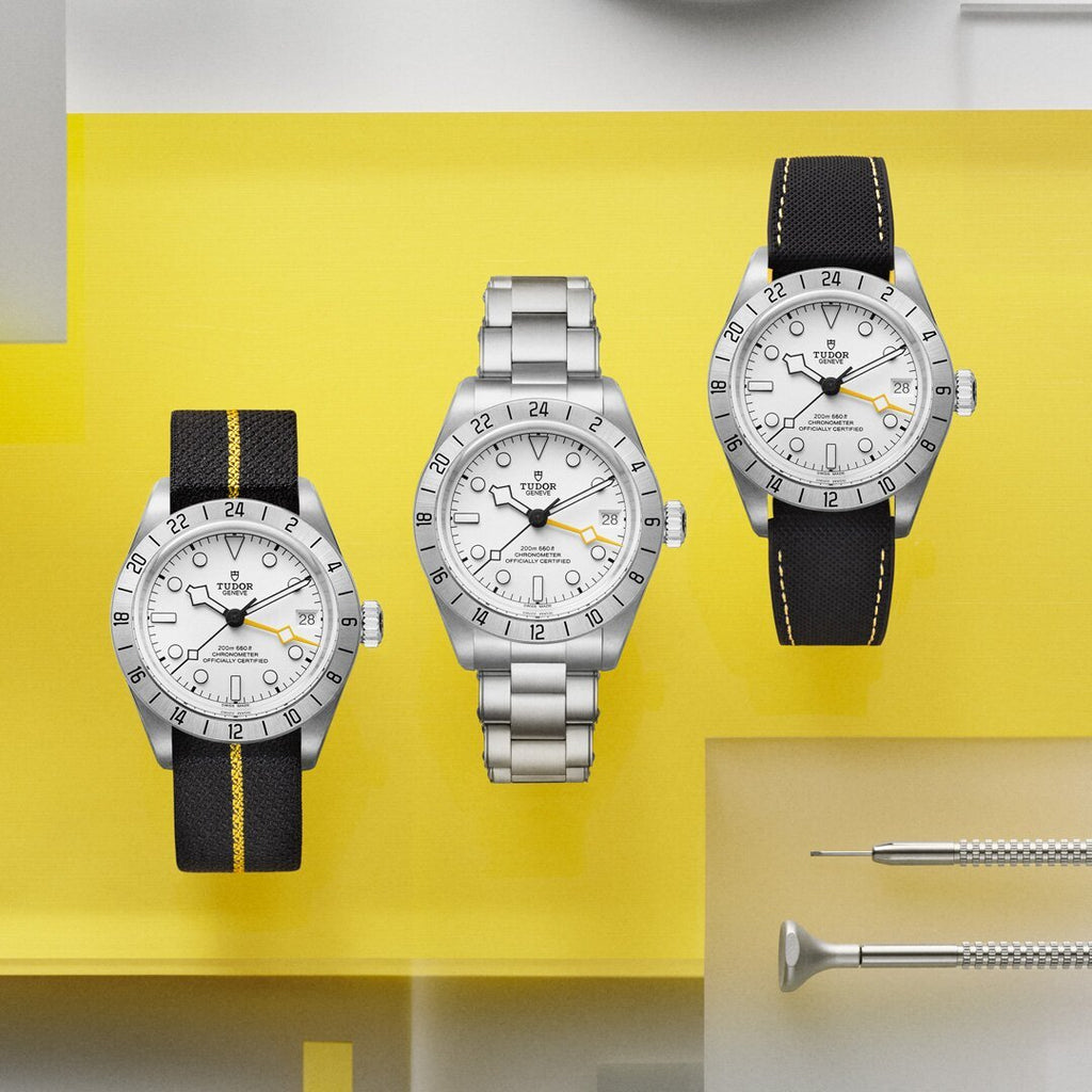 Expertly crafted with a polished and satin finished 39mm steel case, along with an opaline dial, the TUDOR Black Bay Pro features a self-winding mechanical movement powered by the precise Manufacture Calibre MT5652 (COSC). With a bidirectional rotor system and an impressive power reserve of approximately 70 hours, this watch is also waterproof up to 200m (660 ft). Complete with a riveted steel bracelet and a TUDOR “T-fit” clasp for rapid adjustment, this timepiece exudes both style and functionality.
