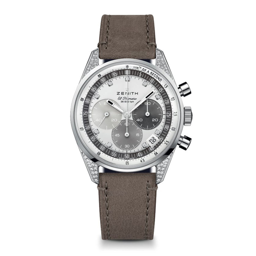 The Chronomaster Original is crafted in a 38mm steel with diamond-set lugs case in the same proportions as the A386, paired with white mother-of-pearl dial with tri-colour registers in three different colours of pearl. Powered by the El Primero 3600 automatic high-frequency chronograph movement with 1/10th of a second chronograph function and a power reserve of 60 hours.